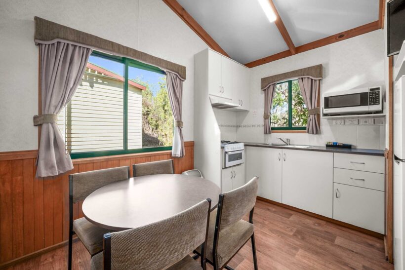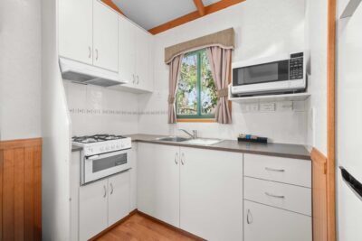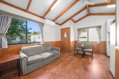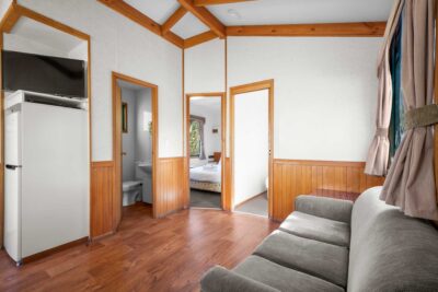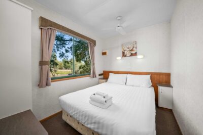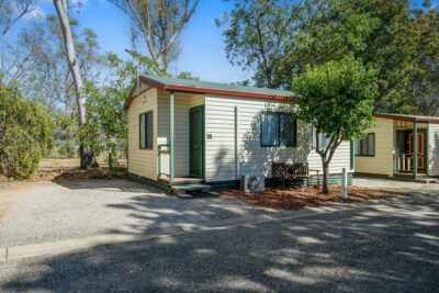 This comfortable cabin is ideal for couples or small families, sleeping up to four guests with a queen bed in one room and a double bed in the other. The air-conditioned interior includes a TV and a compact kitchenette with microwave, stovetop, toaster and kettle. All linen is provided, offering a simple and convenient stay in the heart of Albury.