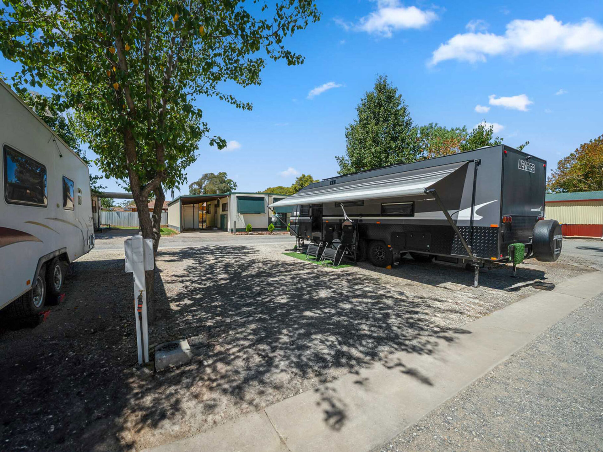These pet-friendly gravel powered sites are ideal for caravans and motorhomes, with drive-through options for added convenience. Each site includes power and water, with easy access to communal amenities. A practical choice for short or extended stays in Albury. Please note: No sullage disposal available at this site.